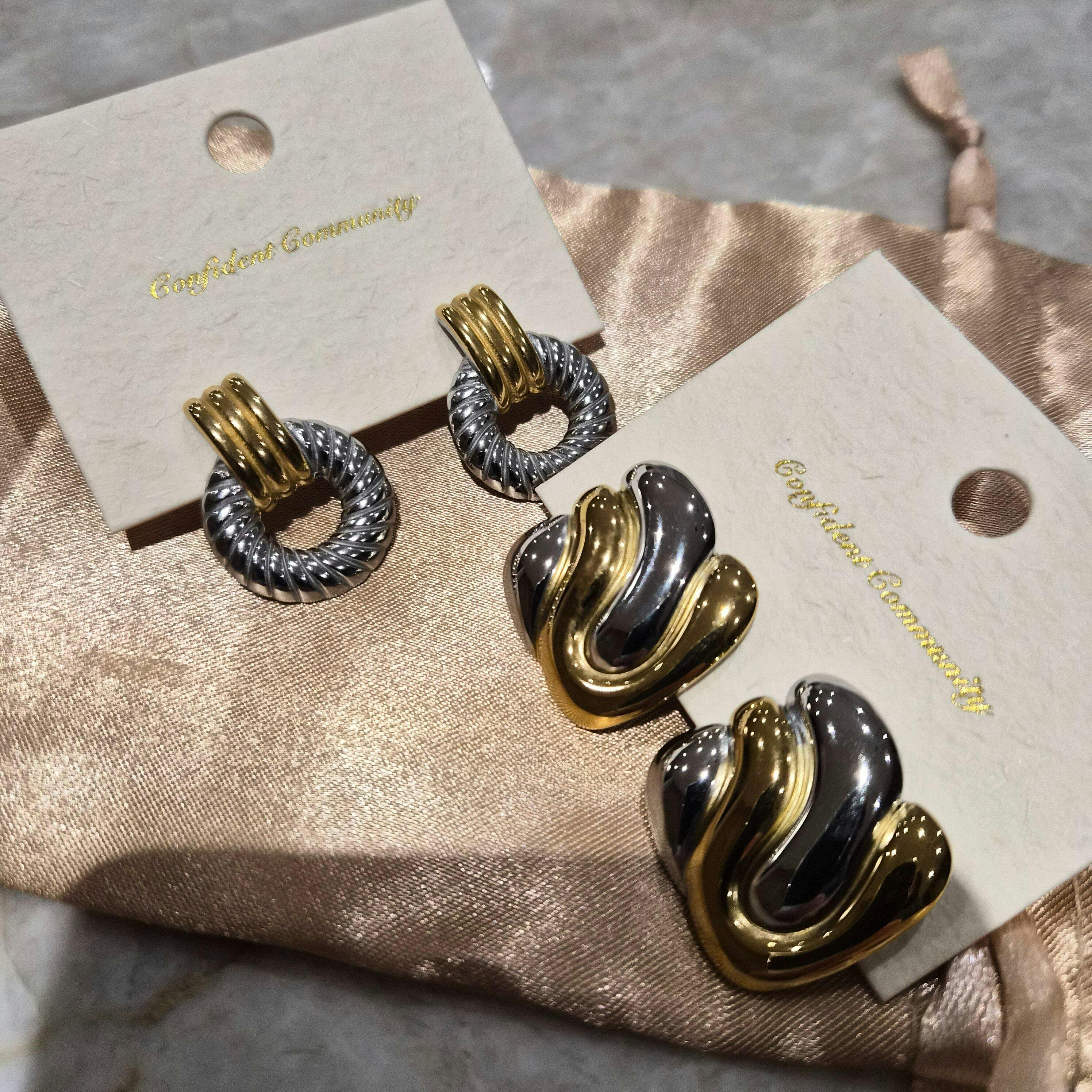Elevate any outfit with these chic two-tone hoops. The twisted silver ring paired with triple gold bands delivers a perfect mix of elegance and edge. Lightweight, versatile, and designed for all-day comfort — luxury style without the luxury price.